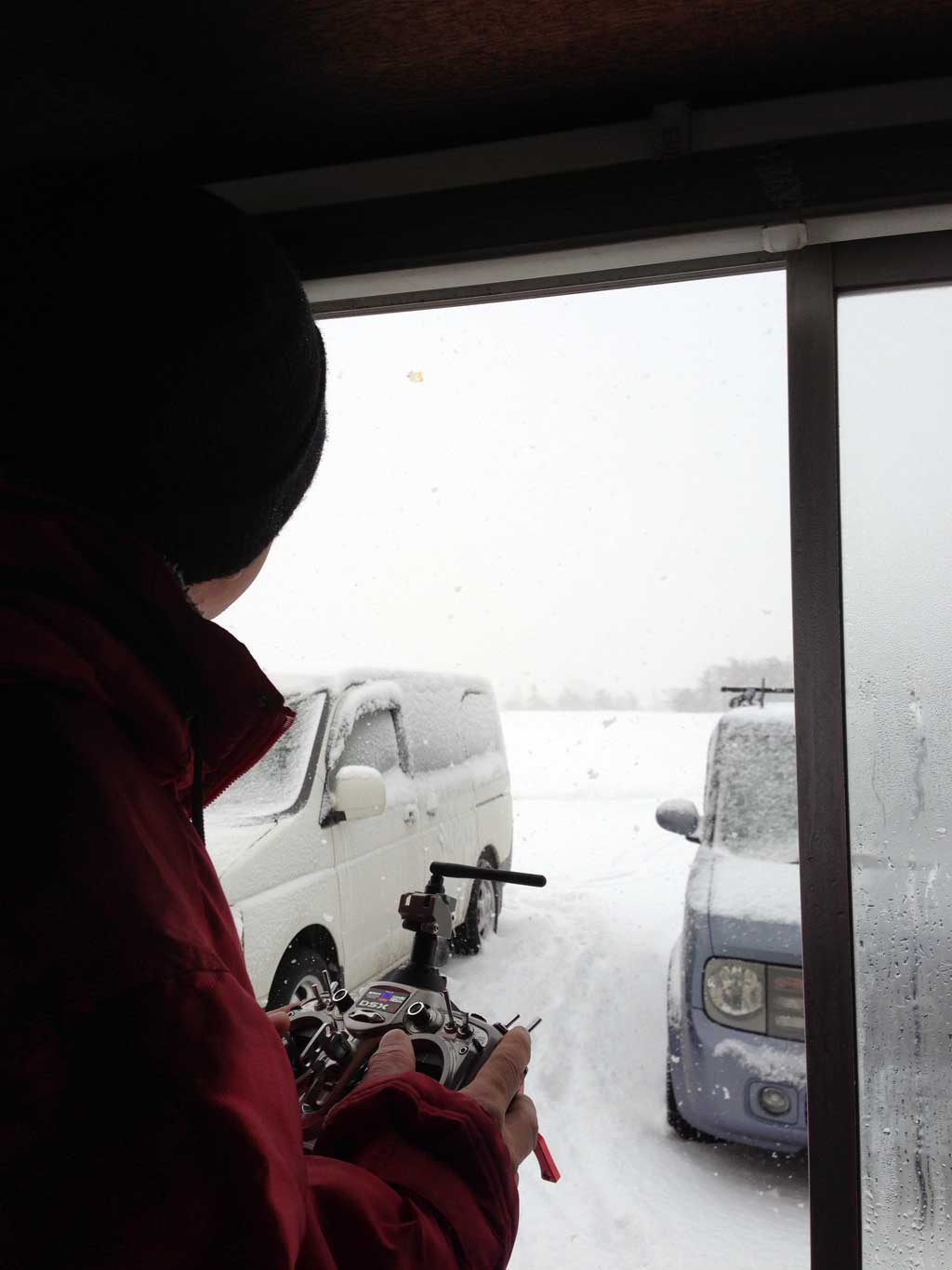 寒いので、ハウス内からフライト!