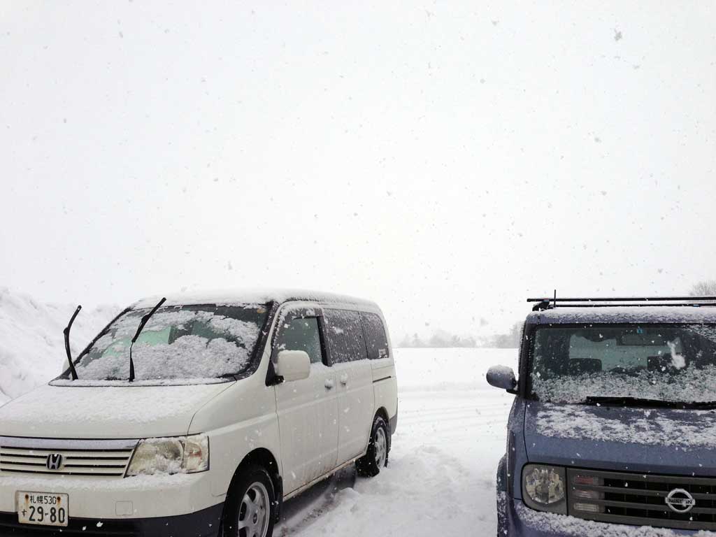 予報では昼に晴れマークが出てたのに、飛行場に来てみると雪、雪、雪。