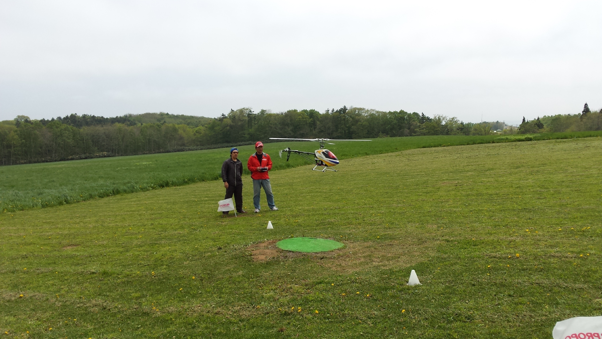 プロポの調整も色々やって、ホバリングの回転数やジャイロの感度設定もいじって.....